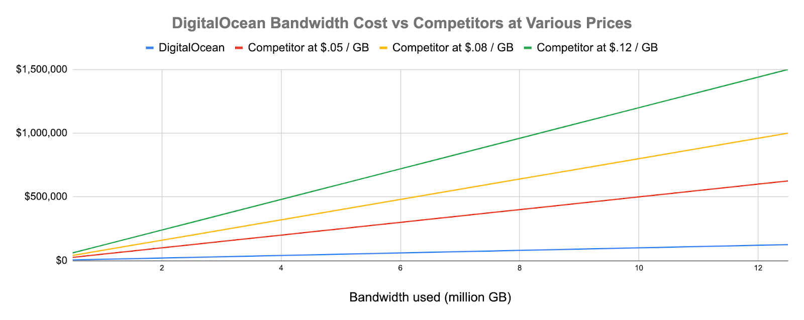 So, how much will this 12.5 million GB in transfer cost you on DigitalOcean vs other clouds?